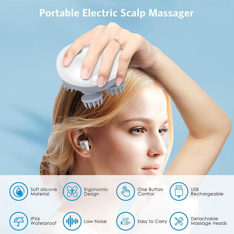 Experience ultimate relaxation with this innovative scalp massager designed to ease tension and promote blood circulation, perfect for use anywhere, anytime.