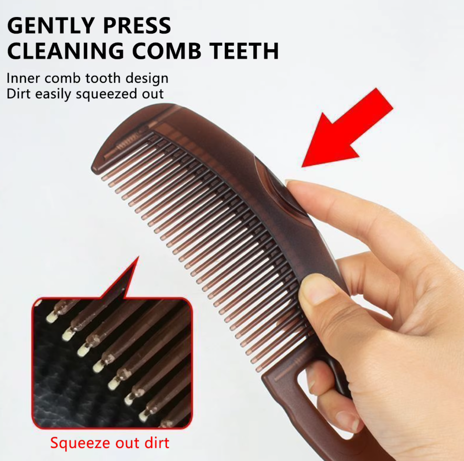 Answer 3: Cleaning the comb is simple. After using it, just press the button to release any trapped dirt, oil, and flakes. This self-cleaning feature ensures your comb remains fresh and ready for the next use.