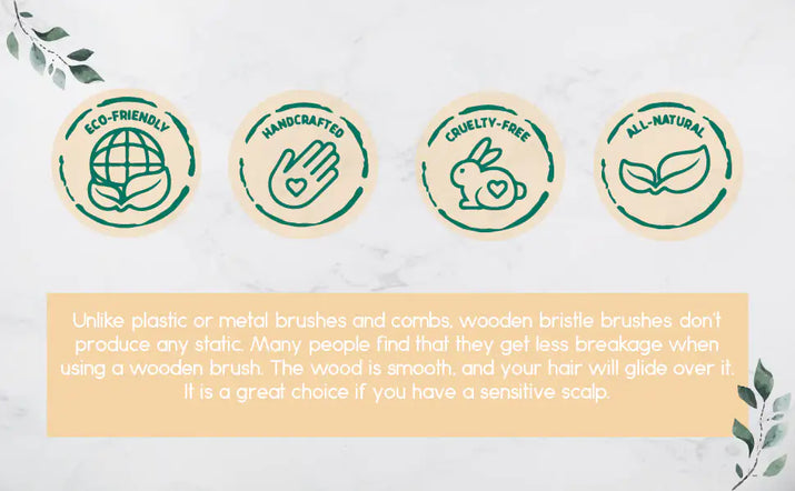 Answer 1: The bamboo bristles are designed to be wider and smoother, allowing them to glide through wet or dry hair without causing snaps or shocks. This unique construction minimizes friction, significantly reducing static and breakage during brushing.